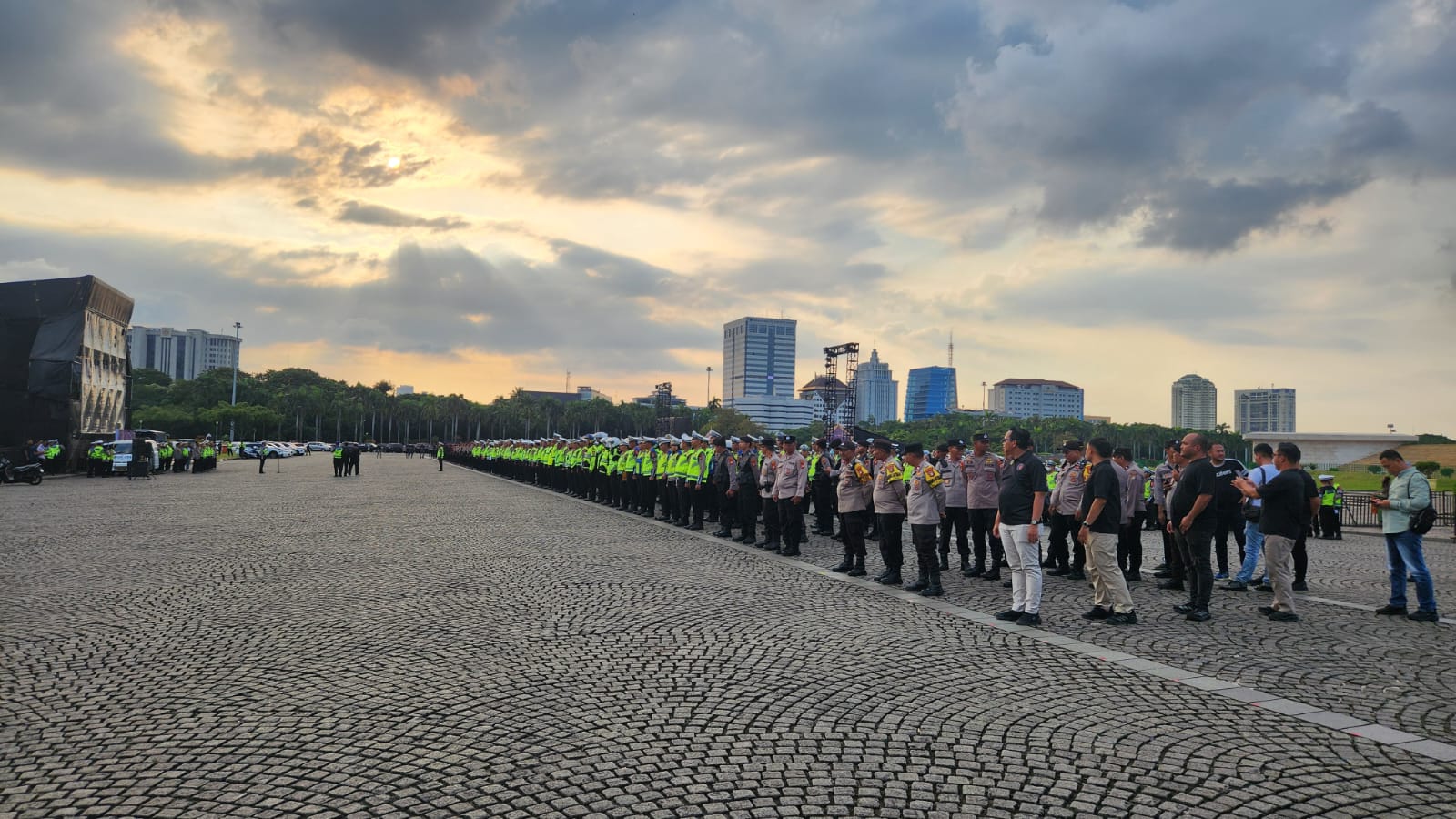 Apel pengamanan digelar di Cawan Selatan Monas pada Jumat (20/3/2026) sore dan dipimpin oleh Dir. Lantas Polda Metro Jaya Kombes Pol Komarudin.