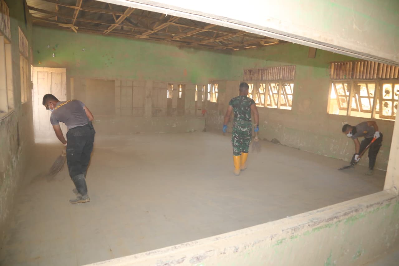 “Untuk proses pengerjaan sendiri sudah kami lakukan selama dua hari. Progres yang sudah kami lakukan sudah membersihkan beberapa kelas dan sudah bisa dipakai untuk kegiatan belajar mengajar. Namun, untuk beberapa bangunan sudah mulai rapuh, sehingga masih diperlukan pembersihan yang lebih mendalam,” jelasnya.