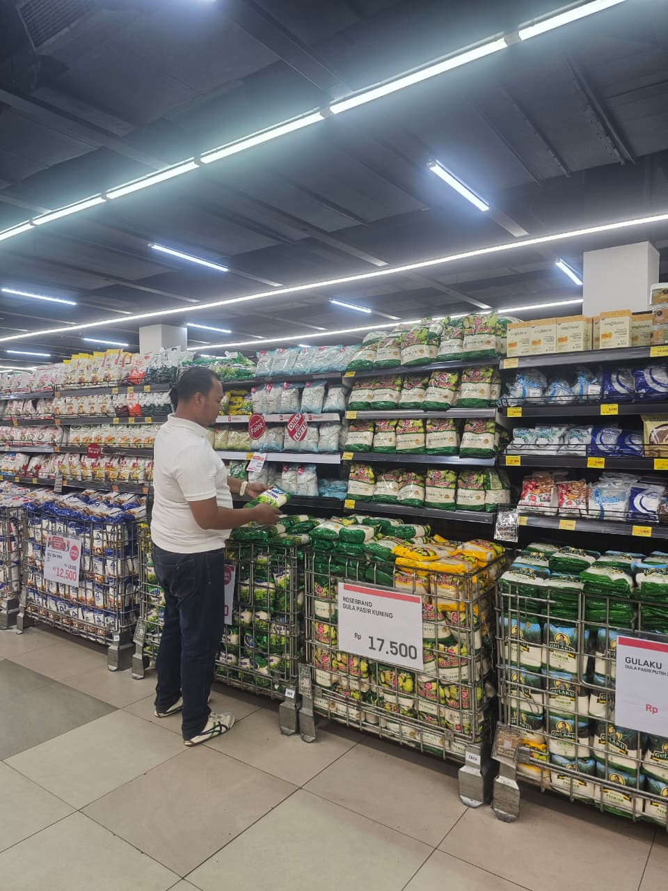 Sementara itu, di Lottemart Green Pramuka, sejumlah komoditas terpantau tersedia dengan harga antara lain beras premium Rp 14.900, daging sapi segar Rp 140.000/kg, daging kerbau beku Rp 124.900/kg, daging ayam ras Rp 34.900/kg, telur ayam ras Rp 30.000/kg, bawang merah Rp 41.500/kg, bawang putih Rp 38.000/kg, dan gula konsumsi Rp 17.500/kg. Namun, cabai rawit merah tercatat Rp 57.000/kg dengan keterangan stok kosong, serta beberapa komoditas tertentu tidak dijual. Di Transmart Cempaka Putih, beras premium terpantau Rp 74.500/5 kg dan beras SPHP Rp 62.500/5 kg, daging sapi segar Rp 118.300/kg, sementara beberapa komoditas tercatat kosong, seperti daging kerbau beku, daging ayam ras, telur ayam ras, dan Minyakita.