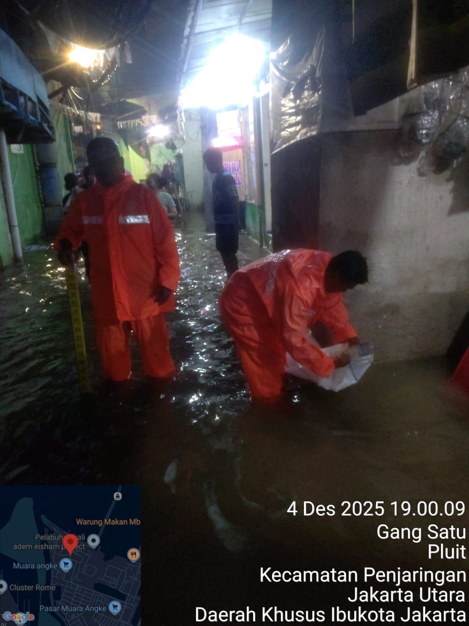 “Pemantauan dilakukan untuk memastikan kondisi wilayah tetap aman. Secara umum, sekitar pukul 19.00 WIB, jalan protokol di Kelurahan Pluit terpantau aman dari genangan, kecuali di beberapa gang di RW 022 yang masih ditemukan genangan rob dengan ketinggian antara 25 sampai 30 sentimeter,” kata Faizal saat dikonfirmasi, Kamis (4/12).