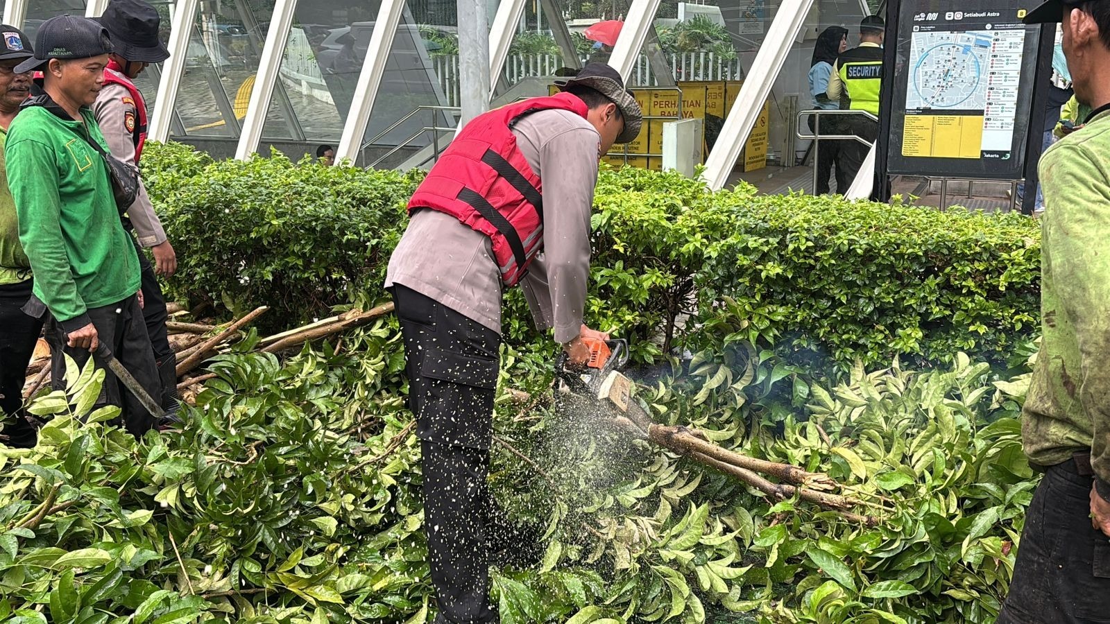 Jakarta, iTodayNews.id – Personel Direktorat Samapta Polda Metro Jaya melalui Subdit Gasum, Sie Pammat melaksanakan patroli siaga bencana banjir dan pohon tumbang sekaligus melakukan evakuasi pohon tumbang di Halte MRT Setiabudi Astra, Jl. Jenderal Sudirman, Jakarta Pusat, Jum’at (27/2/2026) pukul 08.45 WIB.