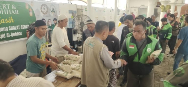 Sebanyak 2.500 paket beras berukuran 2 kilogram lengkap dengan santunan uang tunai Rp100 ribu dibagikan kepada para ojol. Antusiasme masyarakat terlihat begitu tinggi sejak siang, meski sempat terjadi kerumunan pada saat pembagian kupon yang menimbulkan kemacetan, namun berkat kerja sama aparat kepolisian dan pengurus masjid, situasi kembali kondusif hingga akhir kegiatan.