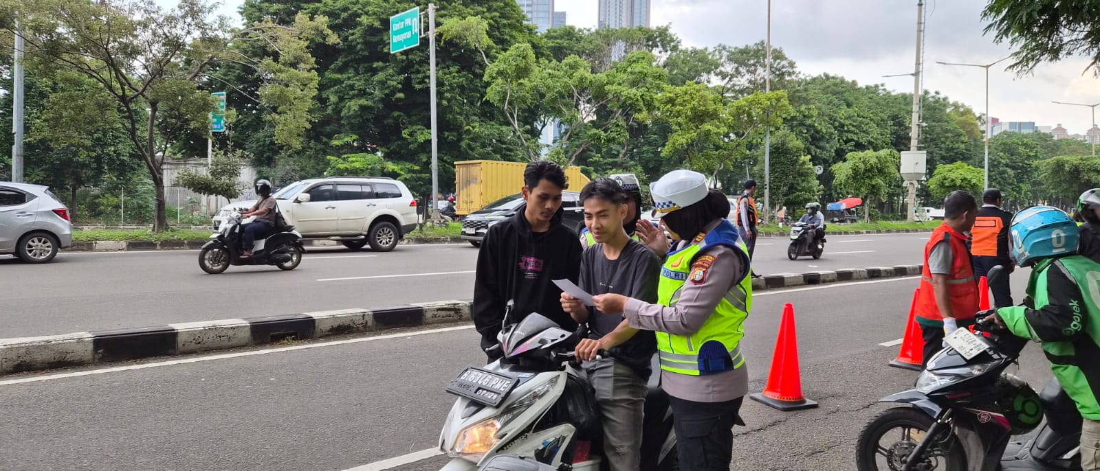 Kegiatan berlangsung di Jl. Industri, Kemayoran, Jakarta Pusat, sejak pukul 08.30 Wib. Sejumlah pengendara yang kedapatan melanggar, seperti tidak memakai helm, melawan arus, hingga tidak melengkapi surat-surat kendaraan, diberikan teguran dan imbauan agar lebih tertib.