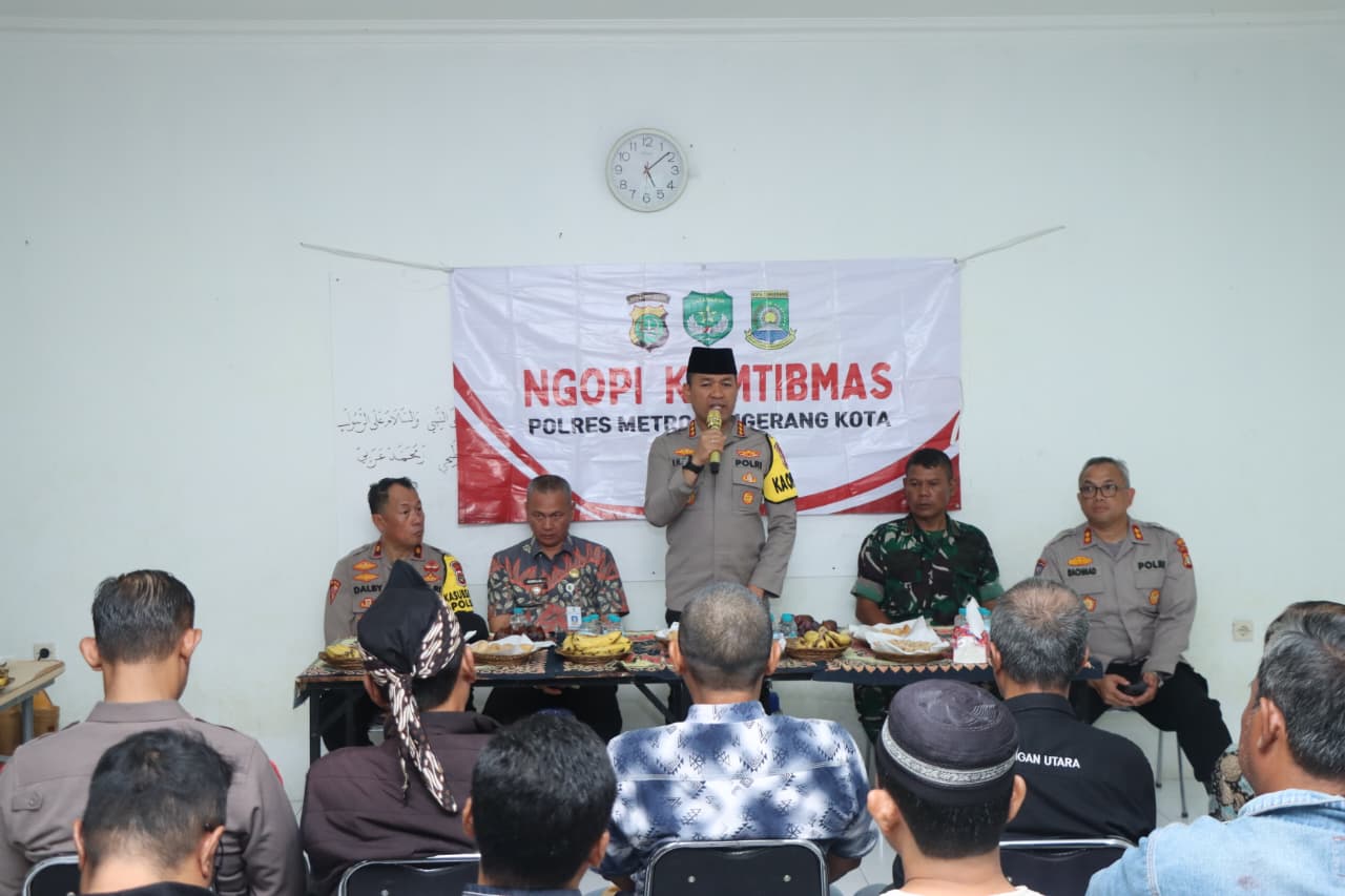 TANGERANG, iTodayNews.id – Kapolres Metro Tangerang Kota Kombes Pol Dr. Raden Muhammad Jauhari, S.H., S.I.K., M.Si. bersama Pejabat Utama Polres melaksanakan kegiatan Ngopi Kamtibmas bersama warga Kelurahan Larangan Utara, Kecamatan Larangan, Kota Tangerang, Kamis (30/10/2025) sore.