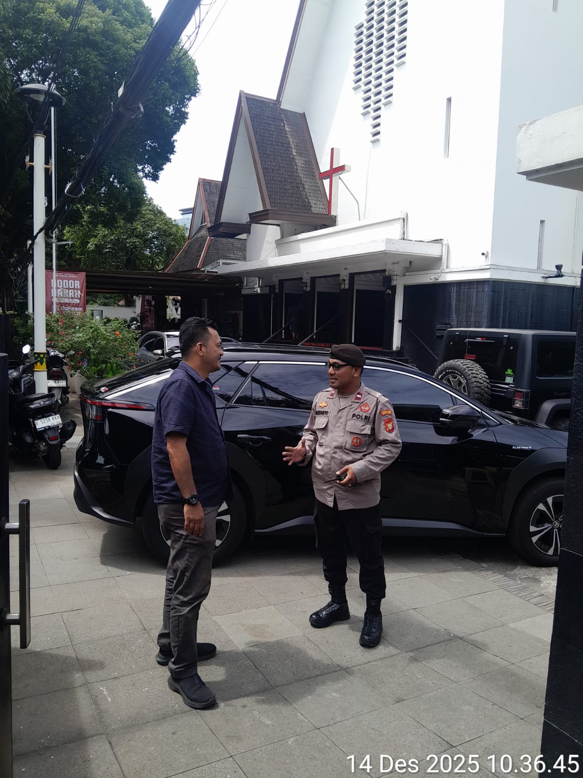 Jakarta Pusat, iTodayNews.id – Personel Patroli Motor (Patmor) Polsek Metro Menteng, Aipda Mulyanto, melaksanakan pengamanan kegiatan ibadah Minggu di Gereja Protestan di Indonesia bagian Barat (GPIB) Paulus, Jalan Taman Sunda Kelapa No. 12, Menteng, Jakarta Pusat, pada Minggu. (14/12/2025) Kegiatan pengamanan ini dilakukan sebagai bentuk pelayanan Polri guna memberikan rasa aman dan nyaman kepada jemaat yang melaksanakan ibadah.