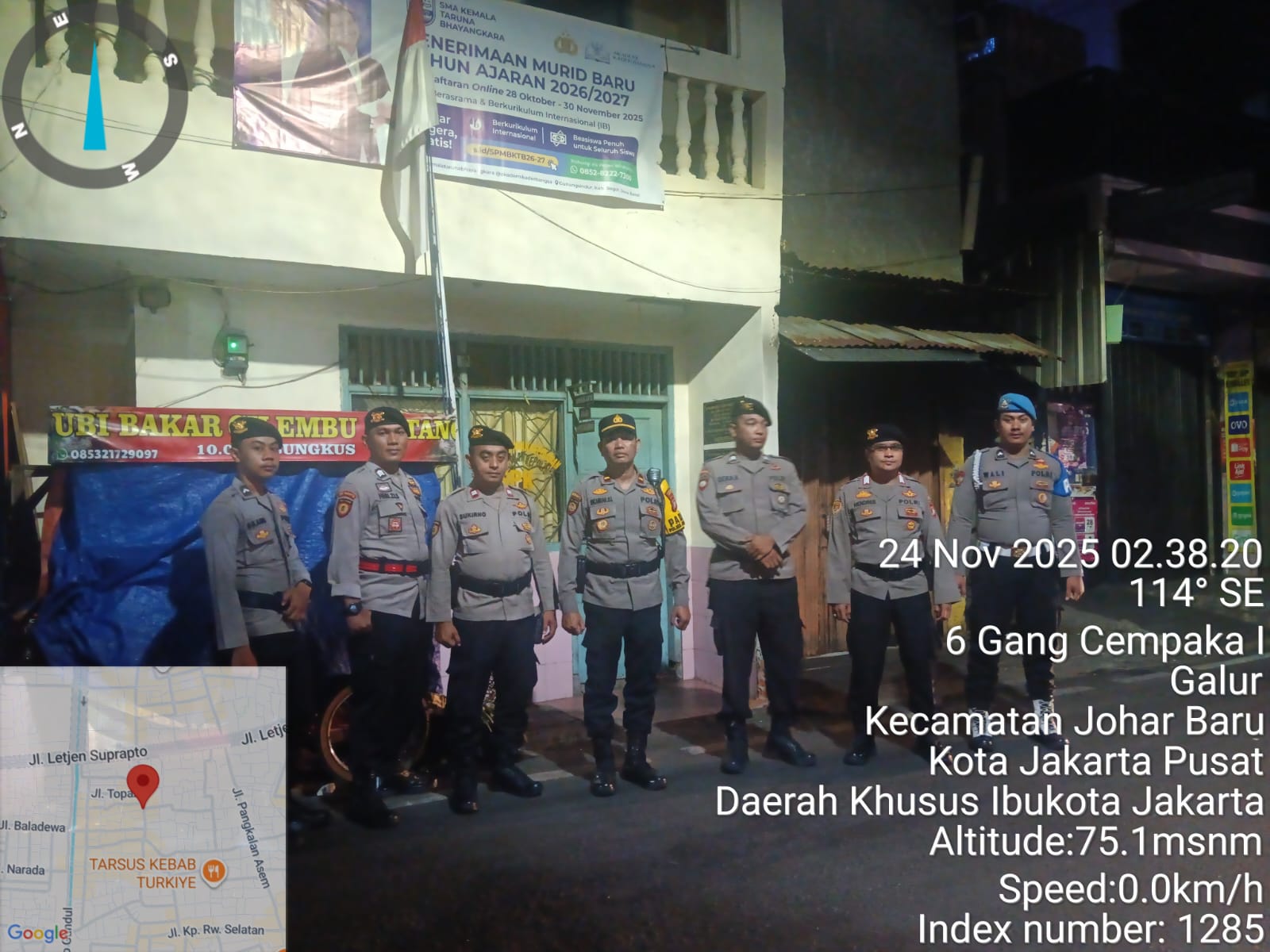 Patroli mobile dilakukan menyusuri sejumlah titik rawan, mulai dari Jl. Kramat Pulo Gundul, Jl. Kramat Jaya Baru, Jl. Kampung Rawa Sawah, Gang T, Jl. Galur Jaya, Jl. Letjen Suprapto, hingga kawasan Tanah Tinggi dan Baladewa, kemudian kembali ke Mako Polsek Johar Baru pada pukul 04.00 WIB.