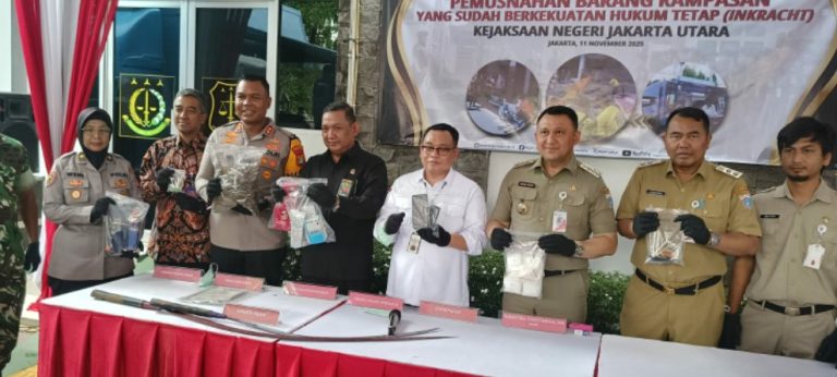 Jakarta Utara, iTodayNews.id – Kejaksaan Negeri Jakarta Utara bersama aparat Kepolisian, Badan Narkotika Nasional (BNN), dan Pemerintah Kota Jakarta Utara melaksanakan kegiatan pemusnahan barang rampasan yang telah berkekuatan hukum tetap (inkracht) di Rumah Penyimpanan Benda Sitaan Negara (Rubasan) Kelas I Jakarta Utara, Jalan Sungai Landak, Cilincing, Selasa (11/11/2025).