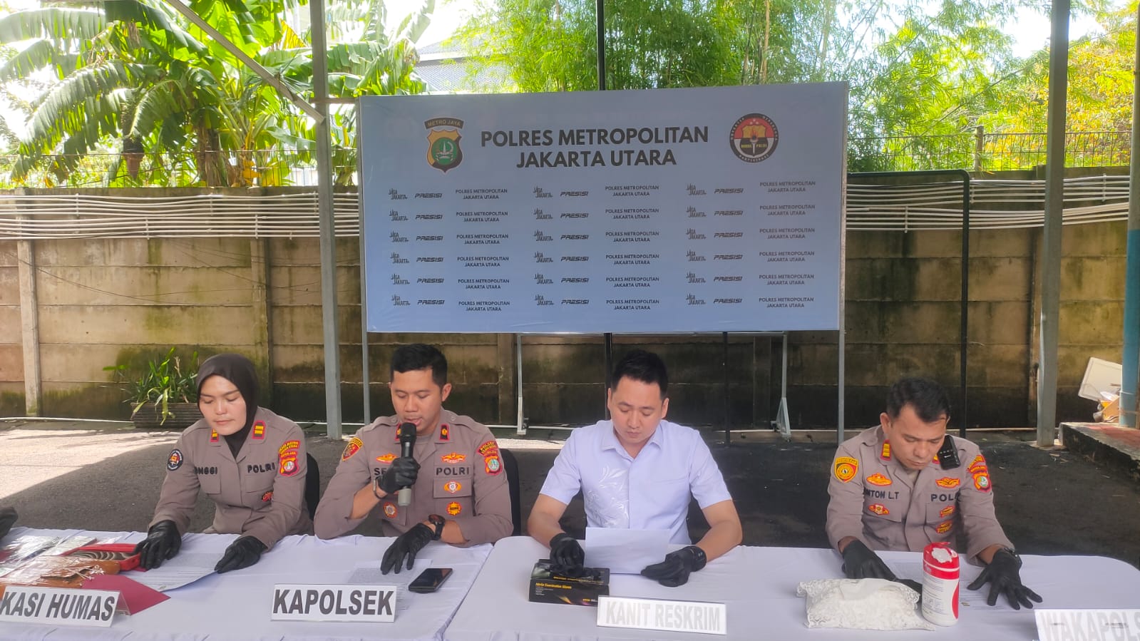 Press release dipimpin langsung oleh Kapolsek Kelapa Gading Kompol Seto Handoko Putra, S.I.Kom., S.IK, didampingi Kanit Reskrim AKP Kiki Tanlim, S.Tr.K., S.I.K., M.Si, para Panit Reskrim, serta Kasi Humas Polres Metro Jakarta Utara IPTU Maryati Jonggi.