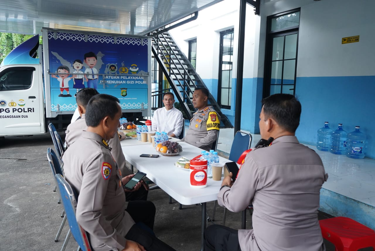 Dalam kegiatan tersebut, Wakapolres didampingi oleh jajaran pejabat Polres Metro Jakarta Utara, antara lain Kabag SDM Amin Muharjo, S.Sos., M.A.P., Kabaglog AKBP H. Khoiri, S.H., M.H., serta Kasiwas AKP Juhri Mustofa, S.H., M.H. Turut hadir pula jajaran Polsek Kelapa Gading serta mitra SPPG Pegangsaan Dua.