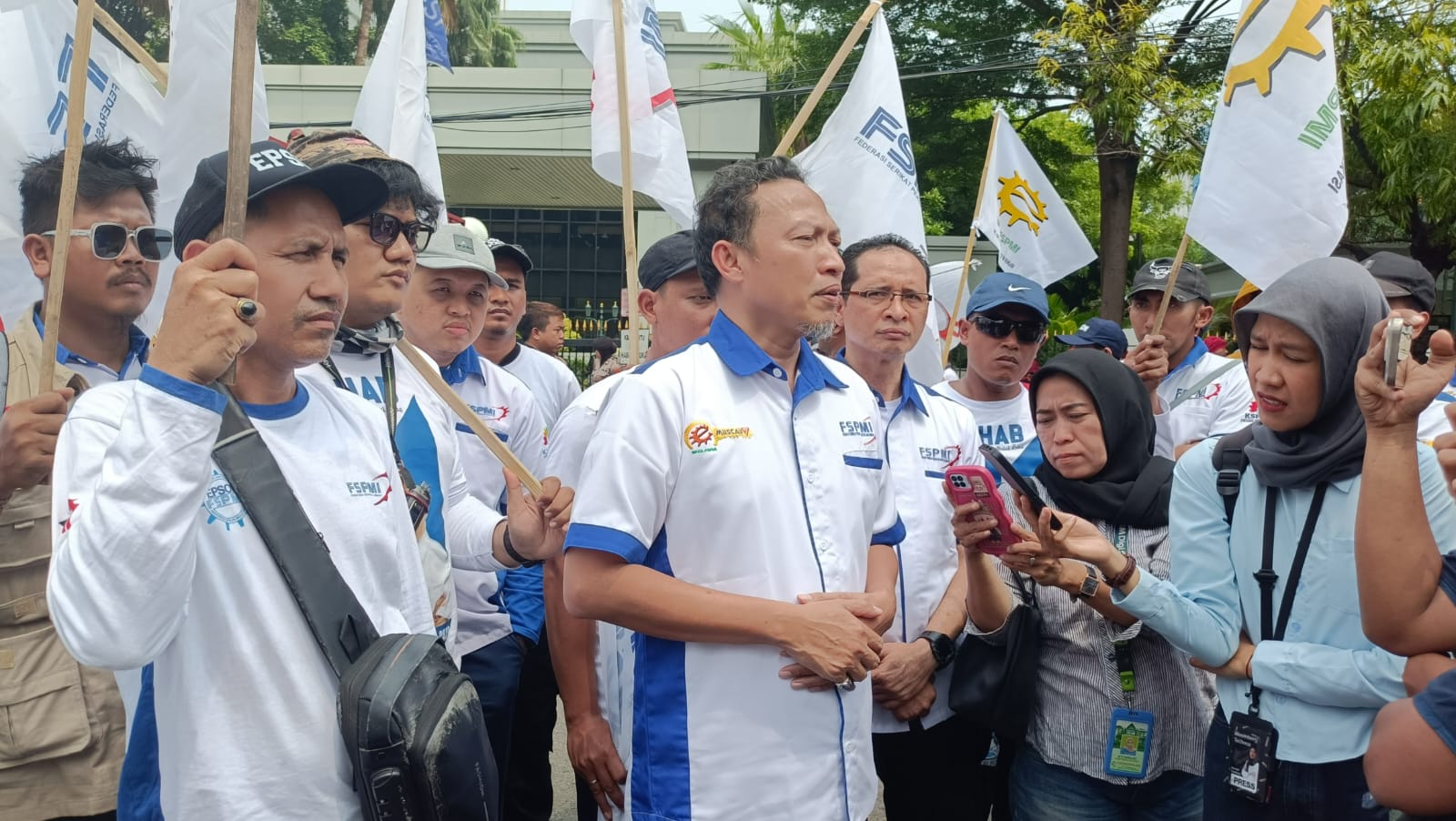 Ketua Umum SPEE FSPMI, Abdul Bais, menegaskan bahwa aksi ini dilakukan tepat sehari setelah peringatan Hari Hak Asasi Manusia untuk menunjukkan bahwa hak bekerja bukan sekadar urusan industrial semata, melainkan bagian dari hak asasi manusia yang wajib dilindungi negara.