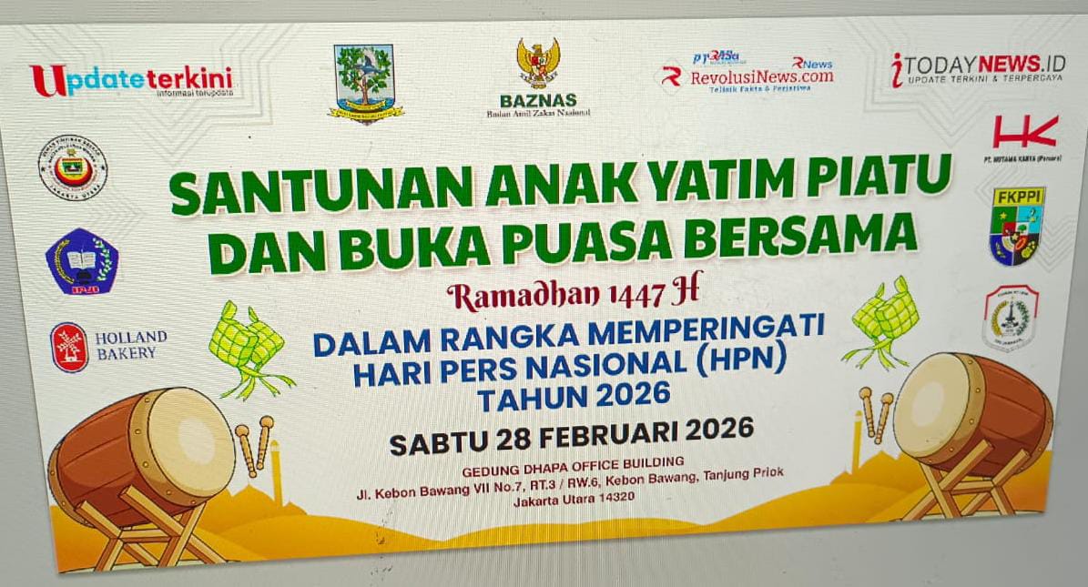 JAKARTA, iTodayNews.ID – Dalam rangka memperingati Hari Pers Nasional (HPN) 2026 yang bertepatan dengan bulan suci Ramadhan 1447 Hijriah, insan pers akan menggelar kegiatan Santunan Anak Yatim Piatu dan Buka Puasa Bersama, Sabtu (28/2/2026) di Dhapa Office Building, Tanjung Priok, Jakarta Utara.